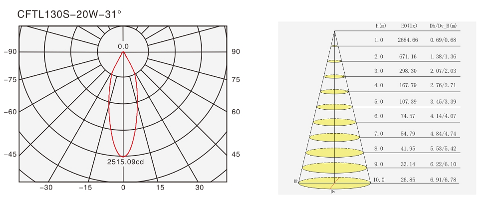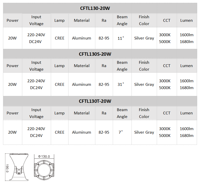 • Using CREE COB as light source which is high lumen, long life span and low light decay;